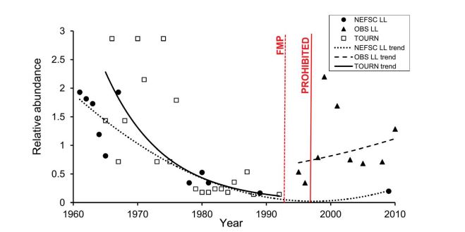 “Populations are increasing because of changes in management measures over the past 2.5 decades. The results from the large coastal species (sandbar, blacktip, tiger, spinner) were remarkably consistent. They very clearly depict high abundance in the 1970s, declines through the 1980s into the early 1990s, followed by a species-specific period of depressed abundance (reflective of the different life history of each species), and rebounding increases into the 2010s. This exactly tracks the history of exploitation and management within this fishery. Unregulated fishing quickly led to population declines of these slow-growing shark populations.” ”