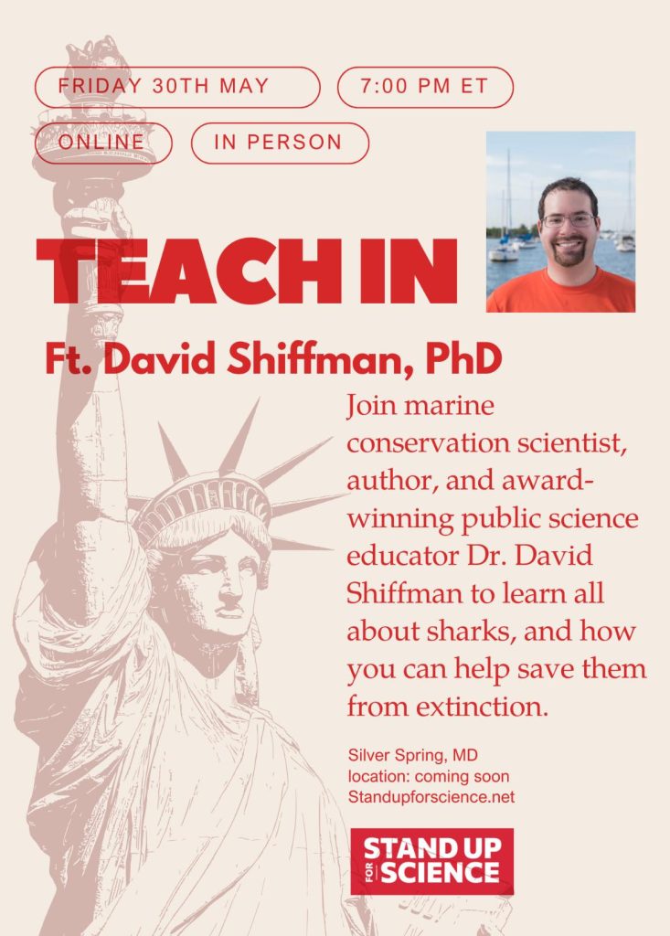 I gave a series of in-person and virtual book talks about “Why Sharks Matter,” including kicking off Stand up for Science’s summer of teach-ins. I also trained Stand up for Science members how to do this kind of work.