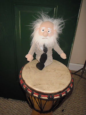 Charlie tries out the djembe