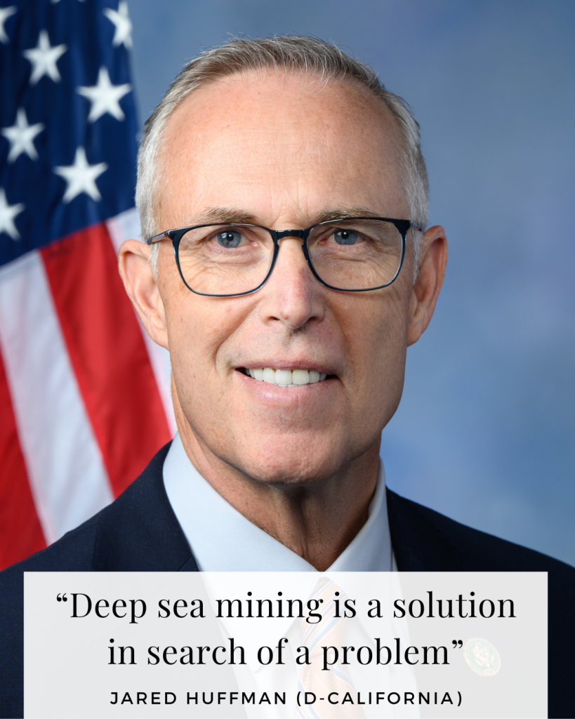 “Deep sea mining is a solution in search of a problem,” said Representative Jared Huffman (D-California).