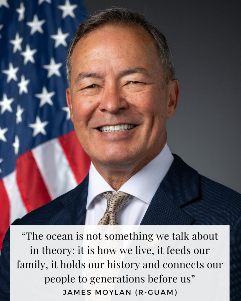 “We (CNMI, Guam, American Samoa) are united here today to protect our homeland,” said Delegate James Moylan (R-Guam). “The ocean is not something we talk about in theory: it is how we live, it feeds our family, it holds our history and connects our people to generations before us”
