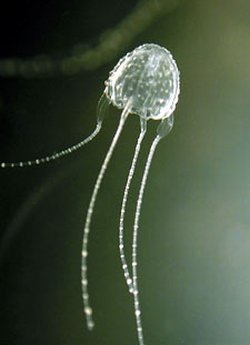 No, I’m not talking about the legendary sea wasp — a box jelly that packs some of the most potent venom in the ocean — but rather its diminutive cousins, Carukia barnesi and Malo kingi, two species with venom so painful that both their scientific names derive from their victims. Their venom is, fortunately, rarely fatal. The initial sting has often been compared to a mosquito bite, while the symptoms — excruciating pain in the muscles, back, and kidneys, headaches, nausea, vomiting, and possibly cardiac arrest — can take hours to emerge. Your skin may feel like it is burning. You can see why people might be afraid of these thumbnail-sized animals.