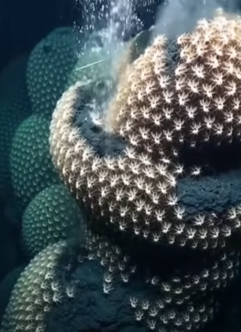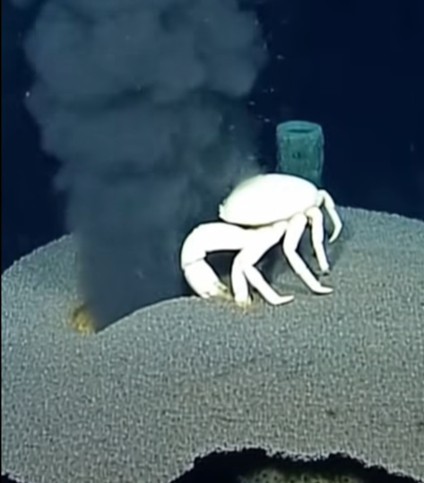 A unidentified jellyfish cooking in the plume of a black smoker. A bythograeid-looking crab huffing vent plumes. Bubbles coming out of a field of oddly uniform anemones. A yeti crab cosplaying as a brachyuran. Toilet brush tube worms. This is just not how deep-sea hydrothermal vents work. Slopcrafters can occasionally create superficially good looking organisms, but they still cannot handle creating ecologically coherent seascapes.